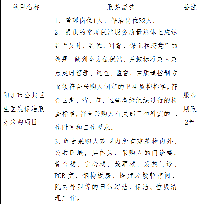 (一)项目名称:阳江市公共卫生医院保洁服务采购项目